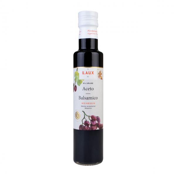 Weinessig aus der Trebbiano-Traube. Traditionell im Holzfass gereift, ist der fein-würzige Balsamico ideal für herzhafte Salate, dunkle Saucen und zum Marinieren von Antipasti. Weicher, anschmiegsamer Körper, in Duft und Geschmack edel und feinwürzig. Auch zum Ablöschen von Braten und rotem Fleisch. Farbe: dunkelbraun. 6 % Säure.