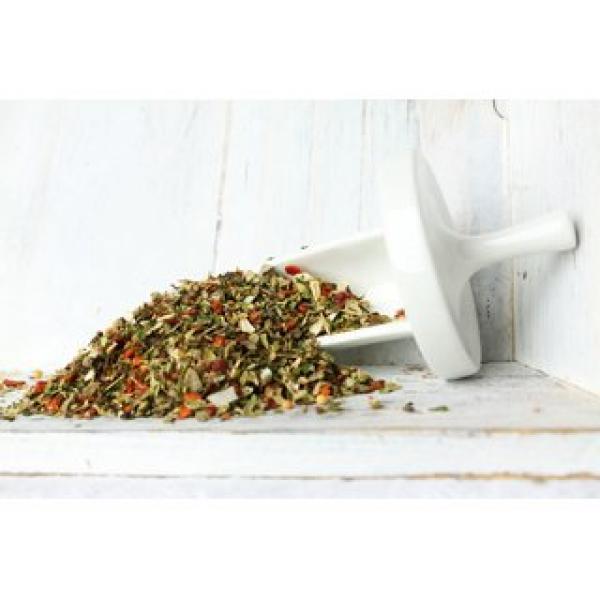 Inhalt Gewürzmischung: Oregano, Zwiebel, Chili, Basilikum, Paprika, Pfeffer, SENF, Petersilie