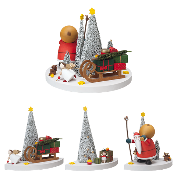 Anders als allgemein üblich, lassen sich die Pyramiden aus der Werkstatt Günter Reichel ganz individuell bestücken. Als kleine Entscheidungshilfe stehen dafür mit den Motiven „Die Krippe“ und „Weihnachtsland” bereits 2 fertig zusammengestellte Figurenteller zum einfachen Auflegen bereit. Sie können aber auch aus dem umfangreichen Sortiment Ihre ganz persönlichen Lieblingsstücke auswählen – für die Pyramide oder gern auch darüber hinaus für eine stilvolle Dekoration in Ihrem Zuhause.