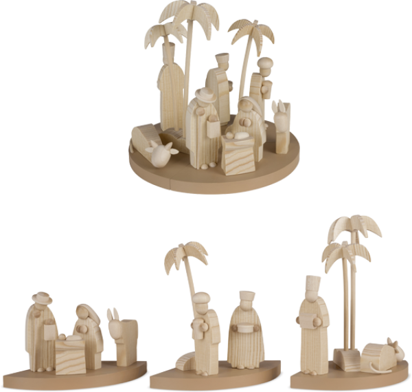 Anders als allgemein üblich, lassen sich die Pyramiden aus der Werkstatt Günter Reichel ganz individuell bestücken. Als kleine Entscheidungshilfe stehen dafür mit den Motiven „Die Krippe“, „Weihnachtsland” bereits 2 fertig zusammengestellte Figurenteller zum einfachen Auflegen bereit. Sie können aber auch aus dem umfangreichen Sortiment Ihre ganz persönlichen Lieblingsstücke auswählen – für die Pyramide oder gern auch darüber hinaus für eine stilvolle Dekoration in Ihrem Zuhause.