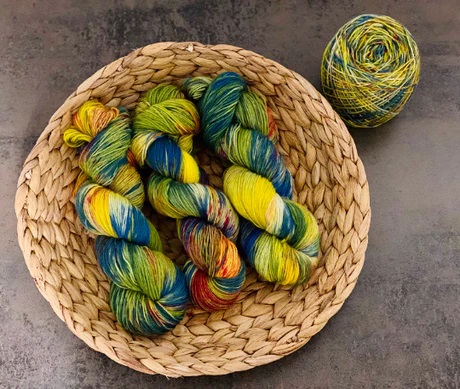 Die Wolle wurde per Hand mit Säurefarben (Luvotex) gefärbt.