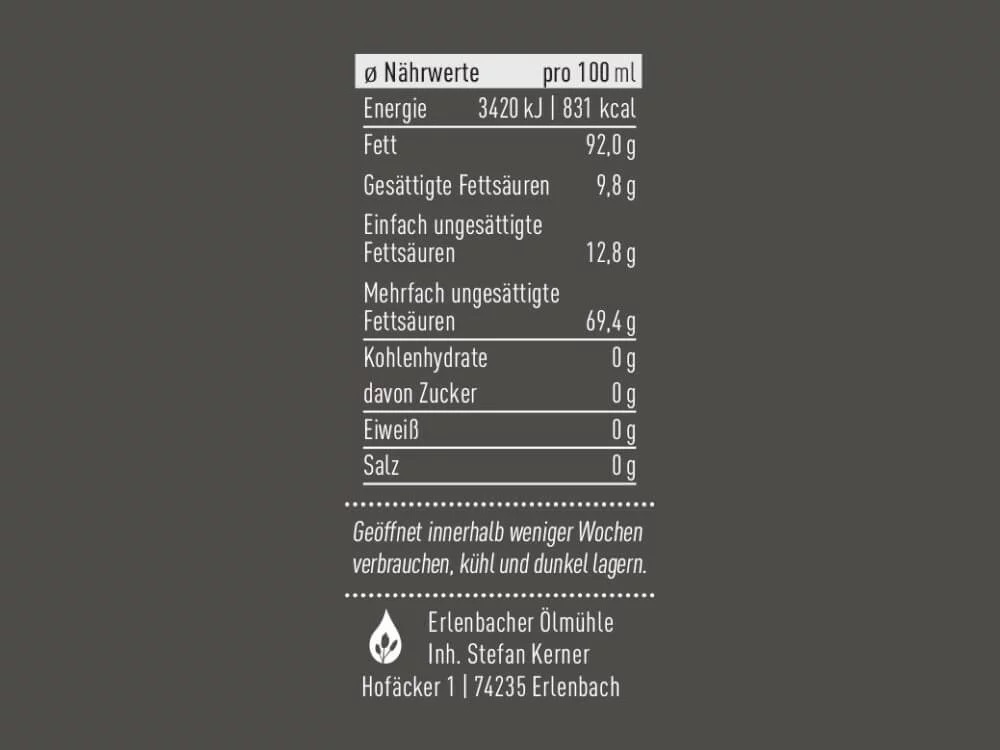 - Das Hanföl bitte ausschließlich für kalte Speisen verwenden.