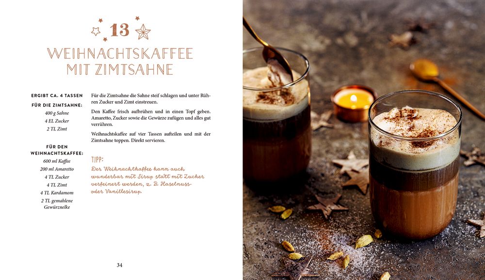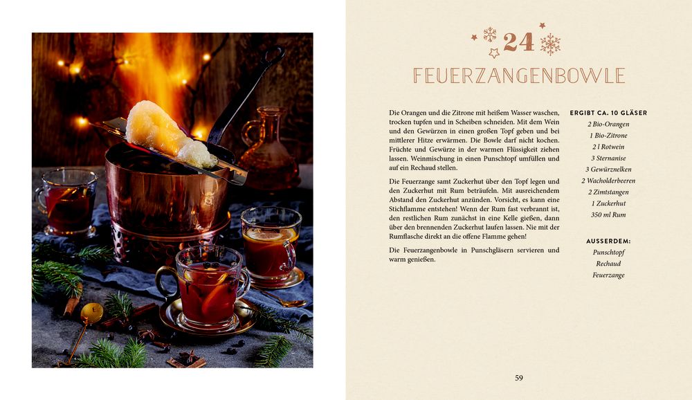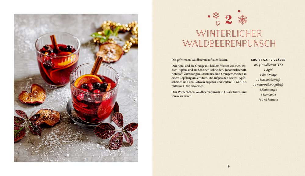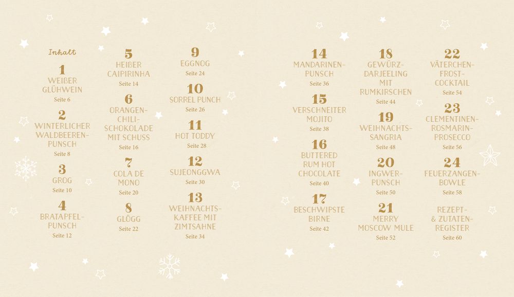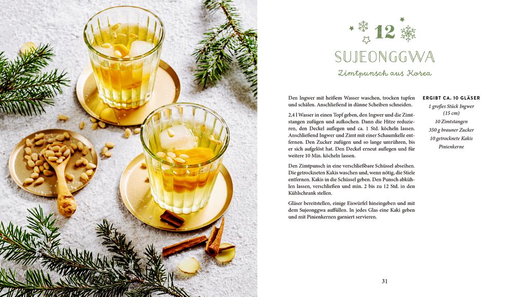 Very Merry Christmas Drinks: Ob fruchtig, cremig, süß oder spritzig – dieser kulinarische Adventskalender sorgt für Abwechslung im Glas. Von wärmender Orangen-Chili-Schokolade, über verschneiten Mojito bis zu klassischer Feuerzangenbowle hält jeder Tag einen neuen Lieblingsdrink für dich bereit. Genieße die schönste Zeit des Jahres mit 24 köstlichen Getränken!