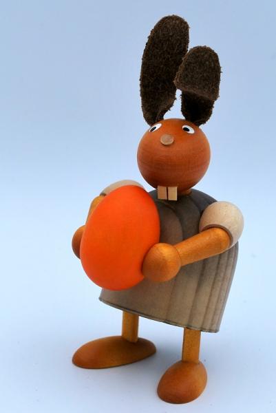 Bis dicht unter seine großen langen Hasenzähne reicht dem Hasen das große Ei, welches er hier schwer zu tragen hat. Es handelt sich aber auch wirklich um ein riesengroßes Exemplar von Ei, welches dem braven Hasen von den Kunsthandwerkern aus dem Hause Torsten Martin hier mit auf den Weg gegeben wurde. Dennoch scheint Meister Lampe kein Problem damit zu haben ein solch großes Ei zu tragen. Im Gegenteil, er ist wohl allerbester Frühlinglaune und wird so auch in Ihr Zuhause eine wunderbar frische Frühlingsstimmung Einzug halten lassen.