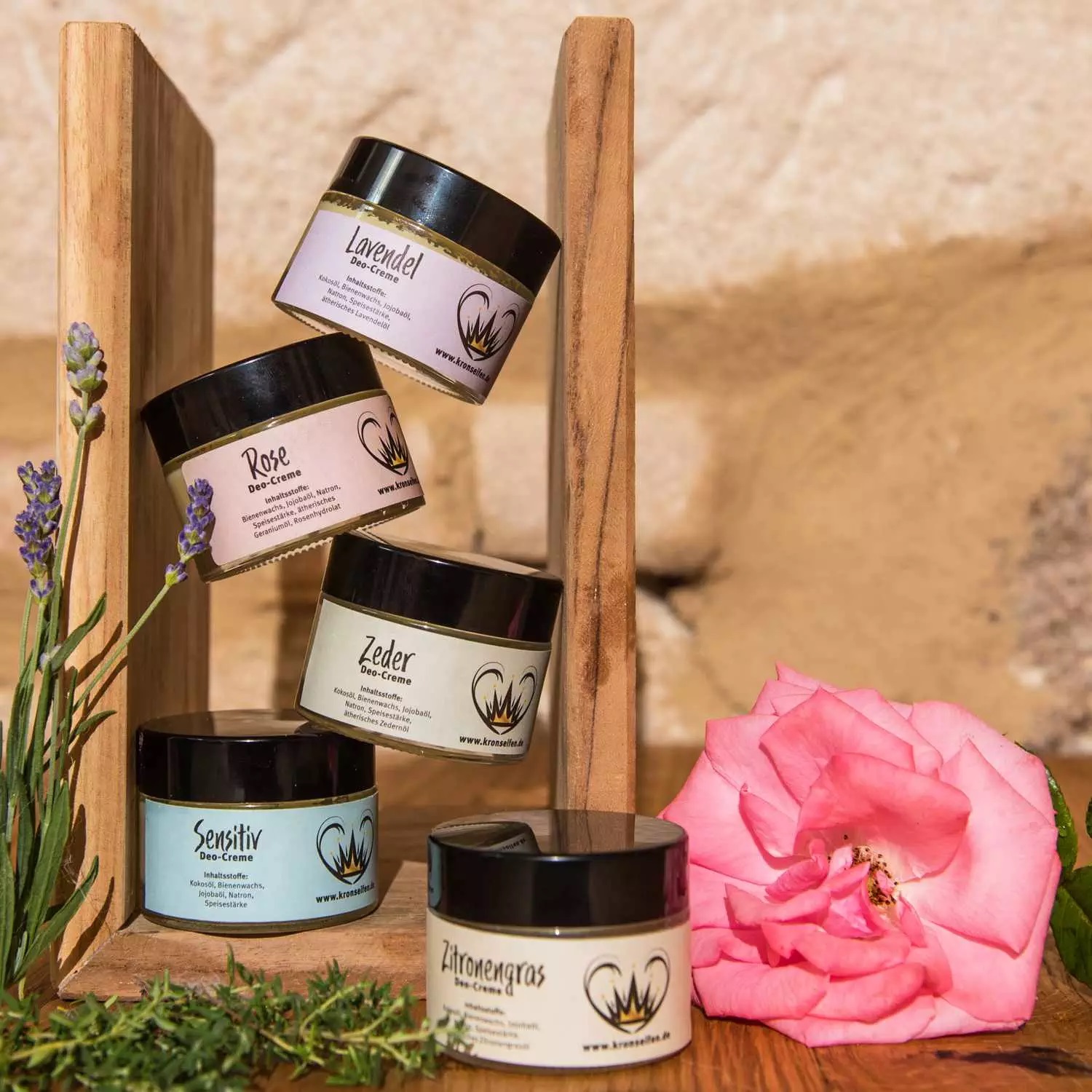 Zitronengrasöl oder Lavendelöl oder Rosen Hydrolat und Geranium oder bei Waldzauber (Rosmarin, Lavendel, Fichte, Patchouli, Ho-Wood , Weihrauch-Hydrolat)