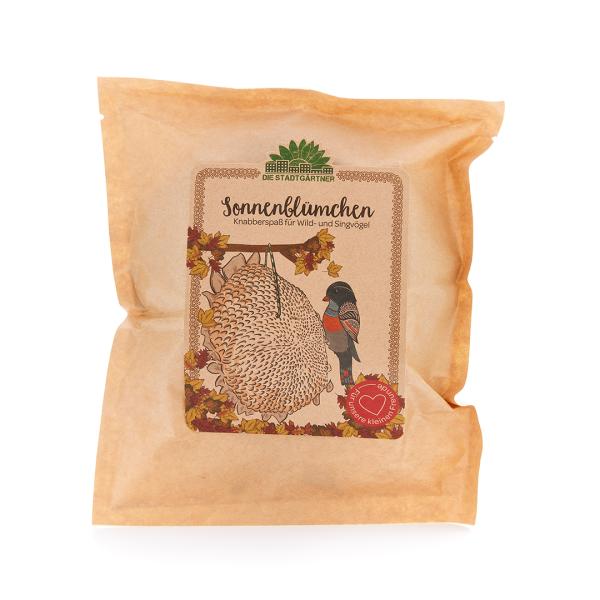 Wenn der Sommer zu Ende geht und die Sonnenblume allmählich ihre gelben Blätter verliert, wird sie mit ihren energiereichen Kernen zu einem echten Superfood für Vögel. Mit unserem Sonnenblümchen eroberst du ganz leicht das Herz unserer gefiederten Freunde! Besonders in der kalten Jahreszeit picken sie voller Freude und aufgeregt flatternd die leckeren Kerne aus dem Blütenkopf – ein tolles Schauspiel für Groß und Klein!