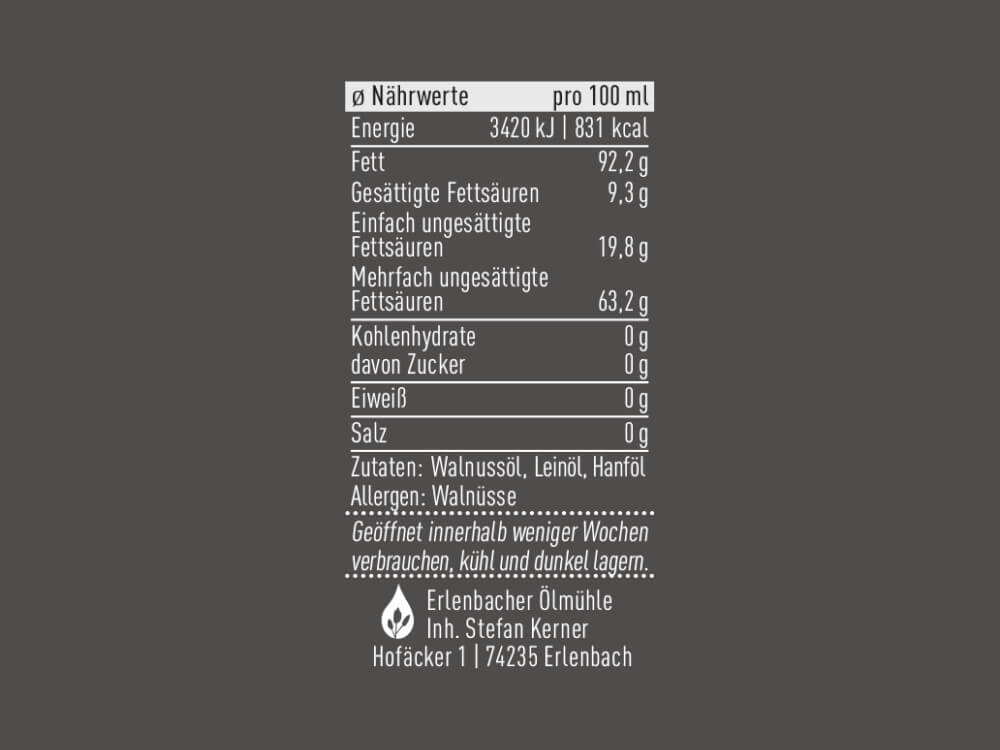 In der Küche kann das Cuveé wie jedes andere Öl verwendet werden, wobei sein idealer Einsatzbereich bei den kalten Speisen liegt. Seine nussige Kräuternote passt daher ideal zu Salaten, Dips, Müsli oder Smoothies.