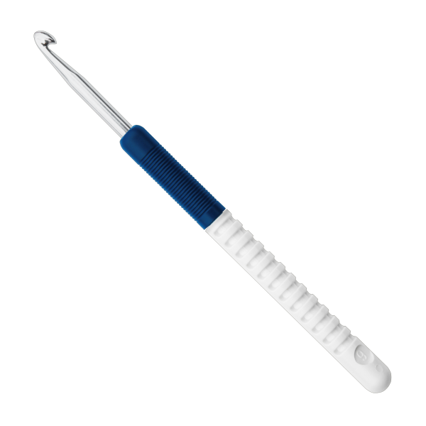 Verstärkter Kunststoffgriff mit Aluminiumhaken, der den richtigen Dreh beim Häkeln erleichtert. Das Vorderteil ist drehbar. So kann die richtige Häkelposition selber ausgewählt werden. 15 cm | Ø 2–6 mm
